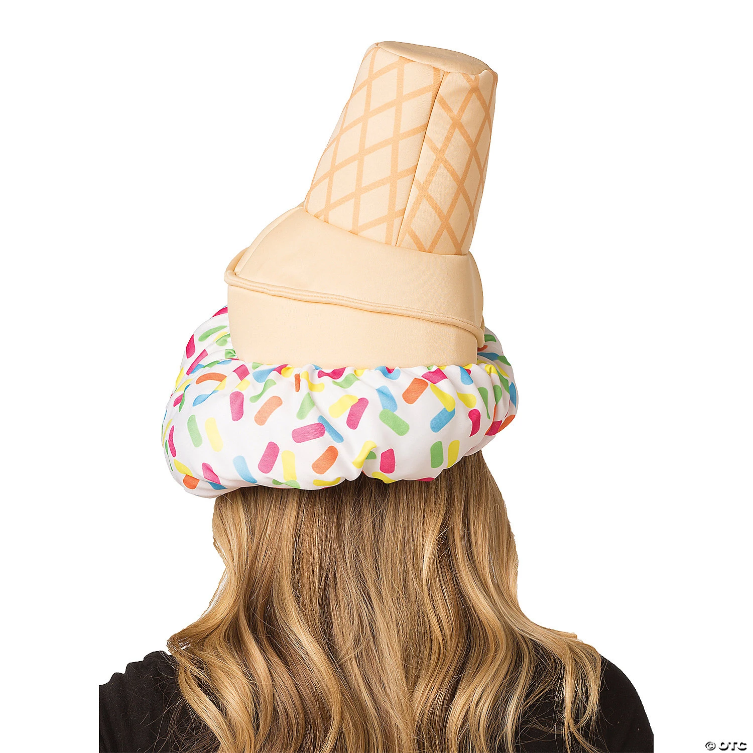 Ice Cream Cone Hat. Show your friends your favorite food with this fun hat and wear it on your head and not your waistline! Includes: Upside down vanilla custard cone with sprinkles. Stuffed and lined for support. 100% polyester. Available Sizes: One size fits most adults. Black shirt is not included.Special Shipping Information: This item ships separately from other items in your order. This item cannot ship to a P.O. Box. This item may be subject to additional processing days.ITEM IS NOT ELIGIBLE FOR EXPEDITED SHIPPING