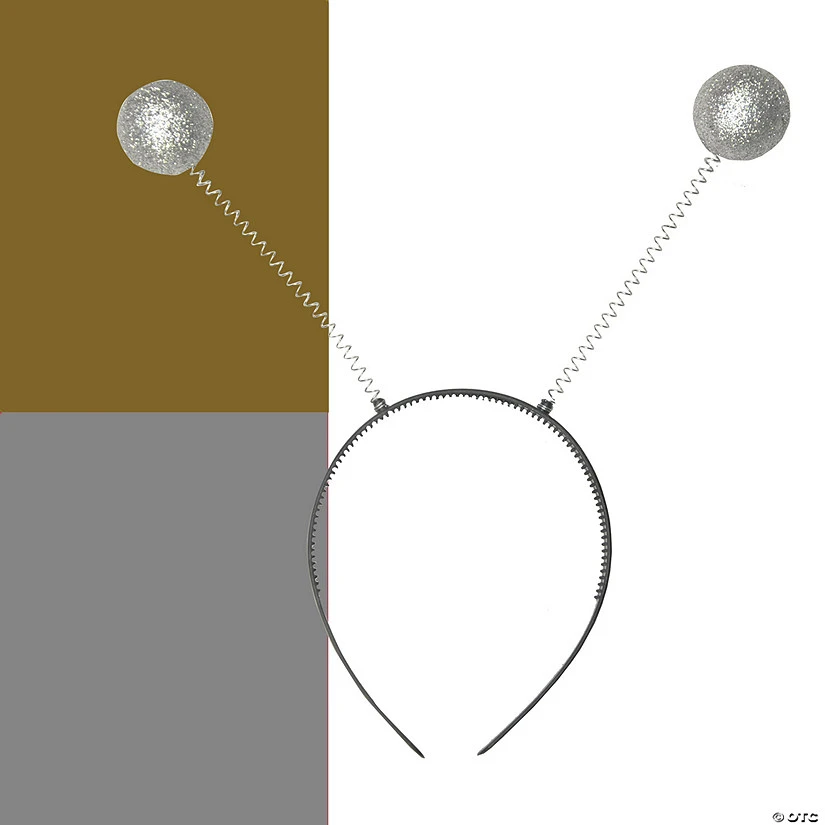 Silver or gold wired tinsel with glitter balls attached to a plastic headband. Perfect for your favorite martian.