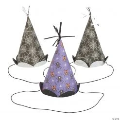 All your little witches will want to wear one! A spellbinding addition to party supplies, these cone hats come accented with spiders and webs. When hosting a Halloween haunt or birthday bash in October, hats like these will make your guests look boo-tiful! Paper with elastic string. (6 pcs. per unit) 5″ x 3 1/4″ diam.