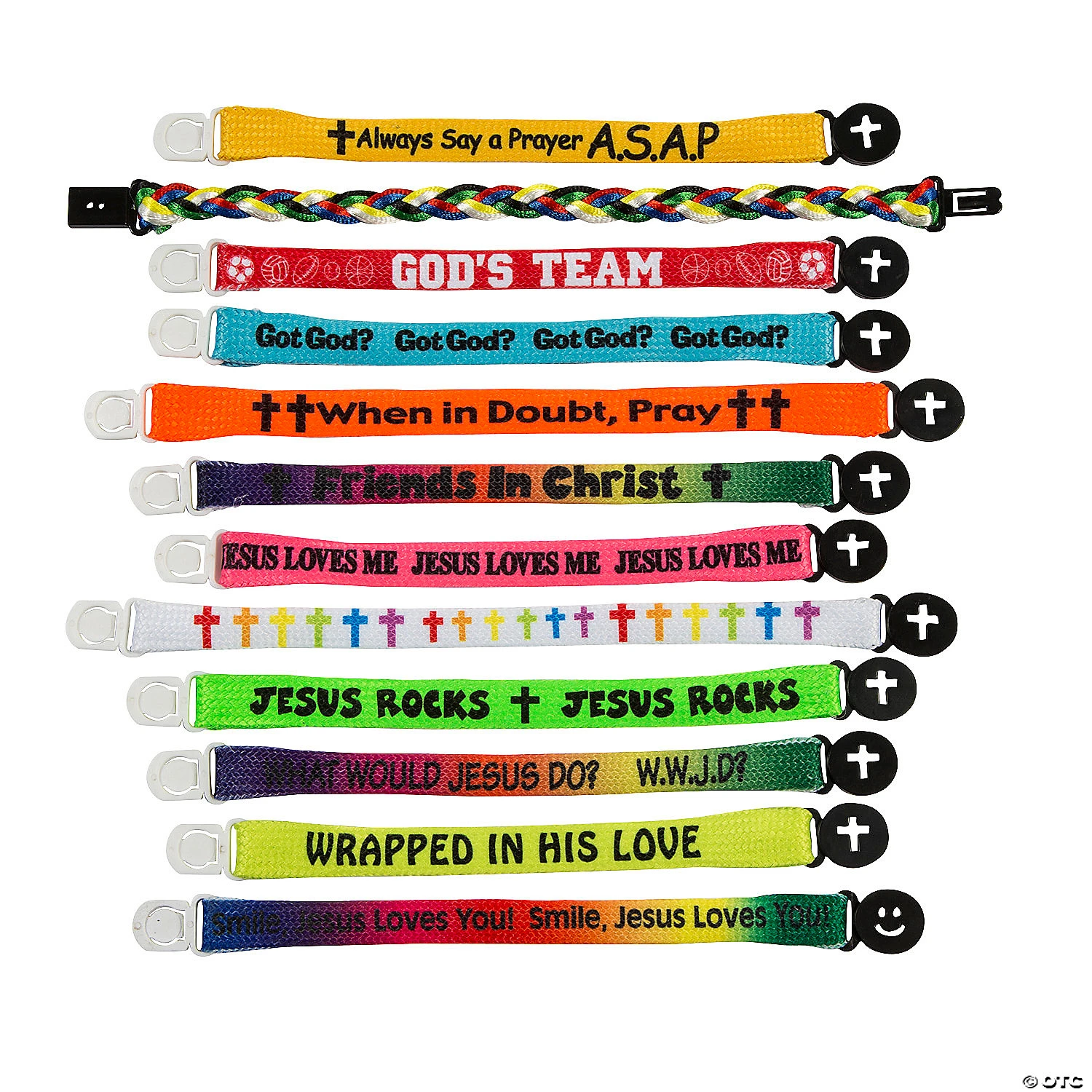 Bulk Religious Friendship Bracelet Assortments are perfect for large event giveaways. Give these bracelets to all your friends! Bracelets make a great party favor or VBS giveaway! Each nylon bracelet has a special message and plastic clasp. (150 pcs. per unit) 8″ Assortment may vary. © OTC