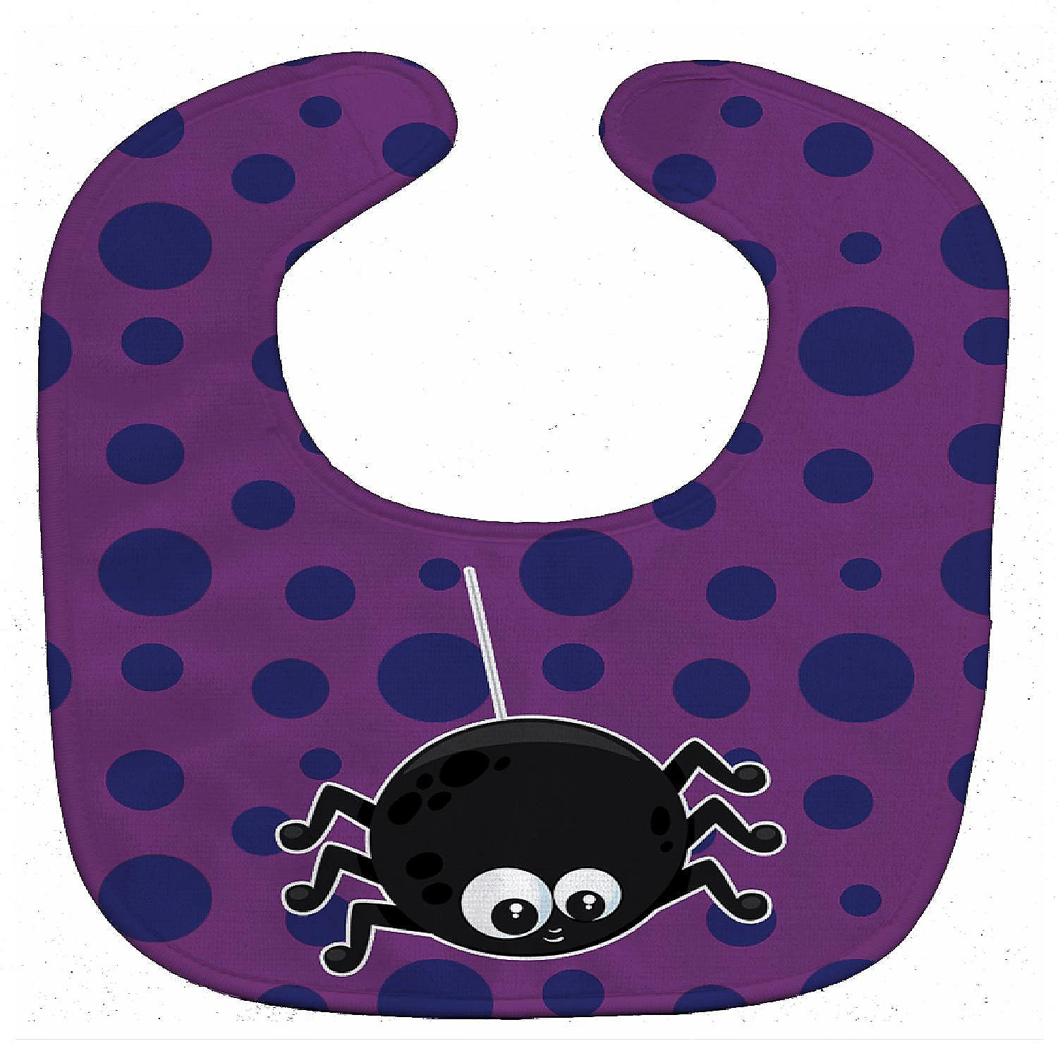 Halloween Spider Baby Bib. Celebrate Halloween with this Halloween Baby Bib. Cute and Functional. Dyed plush fabric baby bib with Velcro closure. Made of ultra-smooth micro-mink polyester that reverses to 100% cotton terry loops. Measures 10 inches x 13 inches, 0.8 oz. per piece. Edges are finished with binding. Machine washable and dry on low heat. Fade resistant and stain resistant. Top fabric gets even softer after the first wash.