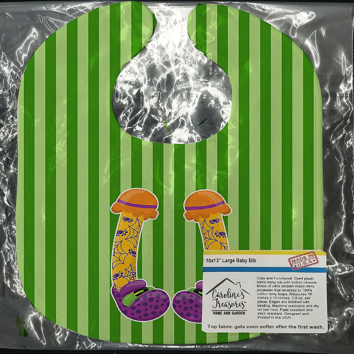 Halloween Witch’s Feet #3 Baby Bib. Celebrate Halloween with this Halloween Baby Bib. Cute and Functional. Dyed plush fabric baby bib with Velcro closure. Made of ultra-smooth micro-mink polyester that reverses to 100% cotton terry loops. Measures 10 inches x 13 inches, 0.8 oz. per piece. Edges are finished with binding. Machine washable and dry on low heat. Fade resistant and stain resistant. Top fabric gets even softer after the first wash.