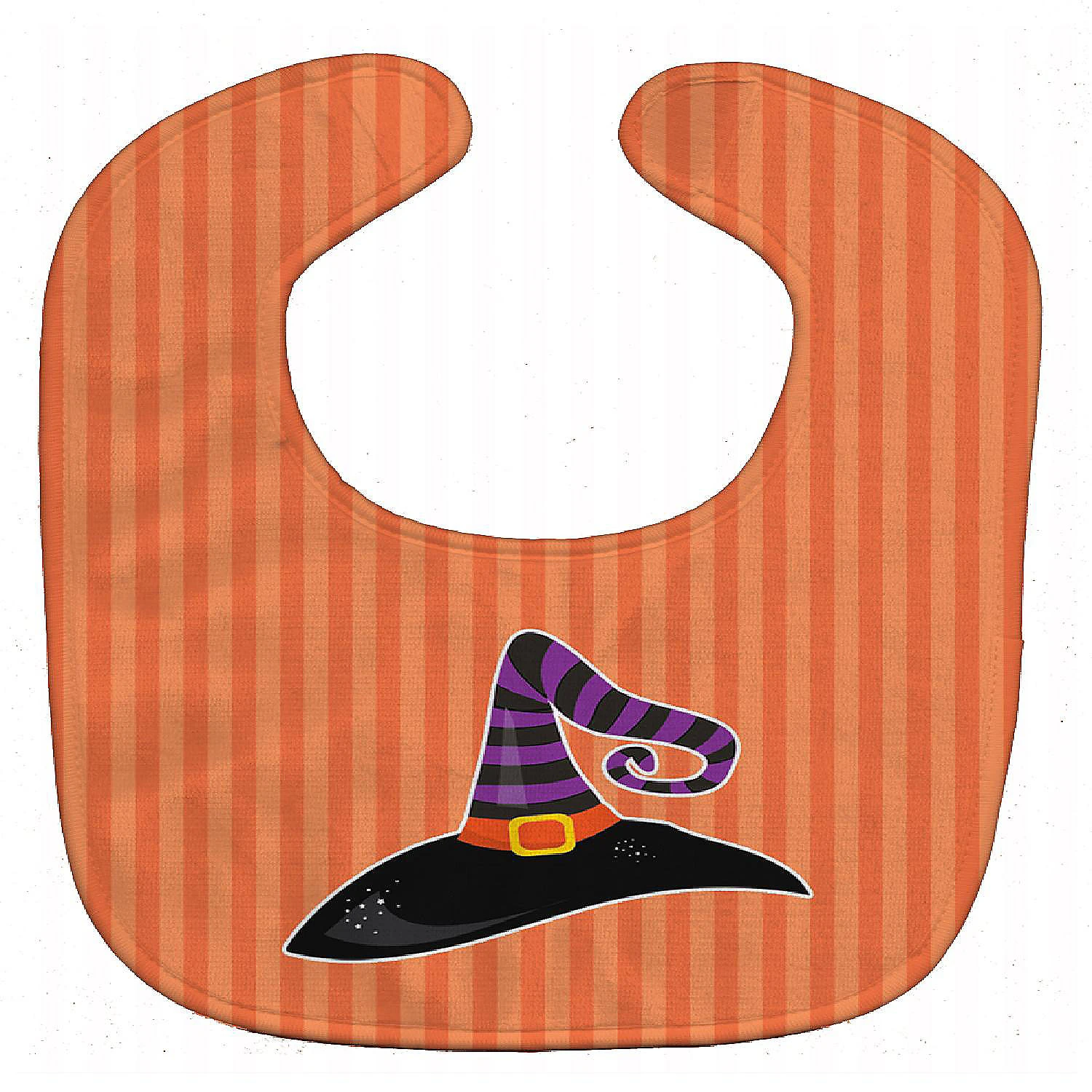 Halloween Witch’s Hat #2 Baby Bib. Celebrate Halloween with this Halloween Baby Bib. Cute and Functional. Dyed plush fabric baby bib with Velcro closure. Made of ultra-smooth micro-mink polyester that reverses to 100% cotton terry loops. Measures 10 inches x 13 inches, 0.8 oz. per piece. Edges are finished with binding. Machine washable and dry on low heat. Fade resistant and stain resistant. Top fabric gets even softer after the first wash.