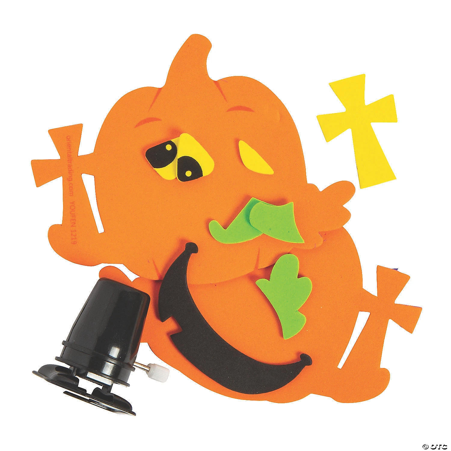Create and play with this clever craft kit! An easy and fun pumpkin craft that becomes a wind-up toy, this is a great choice for a Harvest festival activity table or as a Christian alternative to traditional Halloween crafts. As simple as peel and stick, kids will have a great time putting this craft together because they get to play with it afterward! This happy pumpkin holds a cross, reminding kids to turn their thoughts toward Jesus. Includes self-adhesive foam and plastic wind-up. 4 3/4″ x 3 3/4″ Makes 12. All craft pieces are pre-packaged for individual use. Kit includes directions. © OTC