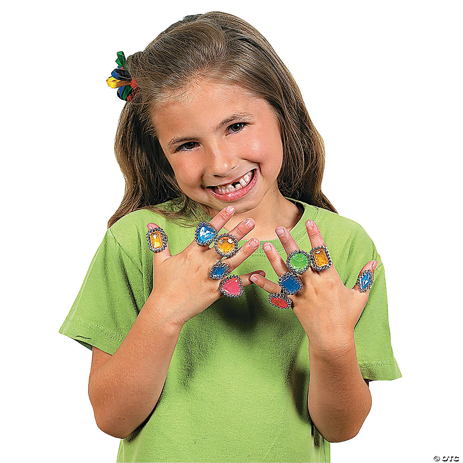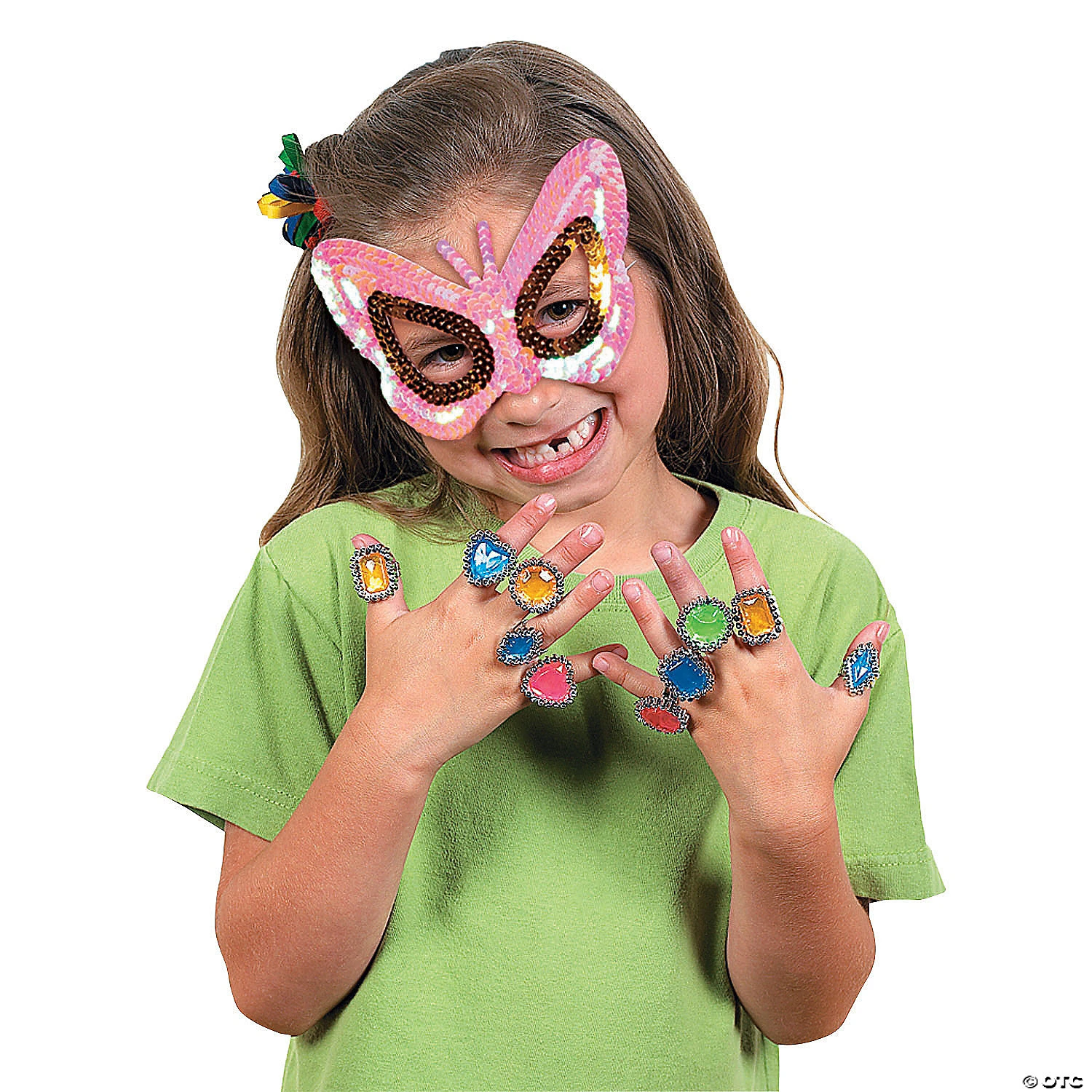 Include these fun plastic rings at your daughter’s next birthday party! Also great for pretend play and dress up, your little princess will love wearing these sparkling jewels on her fingers. Sprinkle these toy rings on your princess party table for wearable confetti that everyone at your royal ball will adore. Shop even more princess party supplies and party favors on our site. Plastic. (6 dozen per unit) 1″