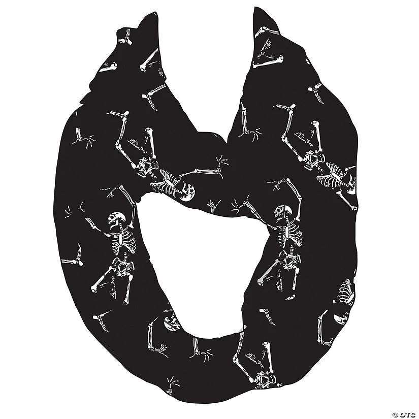 A great accessory for any Halloween costume, goth ensemble or just to show your mood! Includes: Infinity scarf with dancing skeletons on it! Polyester. Available Sizes: One size fits most.Special Shipping Information: This item ships separately from other items in your order. This item cannot ship to a P.O. Box. This item may be subject to additional processing days.ITEM IS NOT ELIGIBLE FOR EXPEDITED SHIPPING