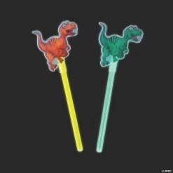 On the prowl for cool kids’ giveaways? These glow sticks will light up your day! The assortment includes orange and green T-Rex character toppers on yellow and green glow wands! Stock up on the glow dinosaur wands to use as dinosaur party favors, carnival prizes or event giveaways. Kids will love waving the glow-in-the-dark dinosaurs around, especially at night! Plastic. 8″ Simply snap and shake to activate the glow.