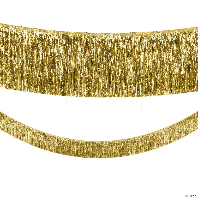 Gold-themed parties and receptions should have some shimmer! This wall decoration is a great choice for a New Yearās Eve party, a graduation celebration or any other gathering featuring gold as a theme color. Whether you want to add some bling to your party or you love the look of gold hanging from the walls of the party space, this gold tinsel is perfect! Plastic. 9 ft. x 8″