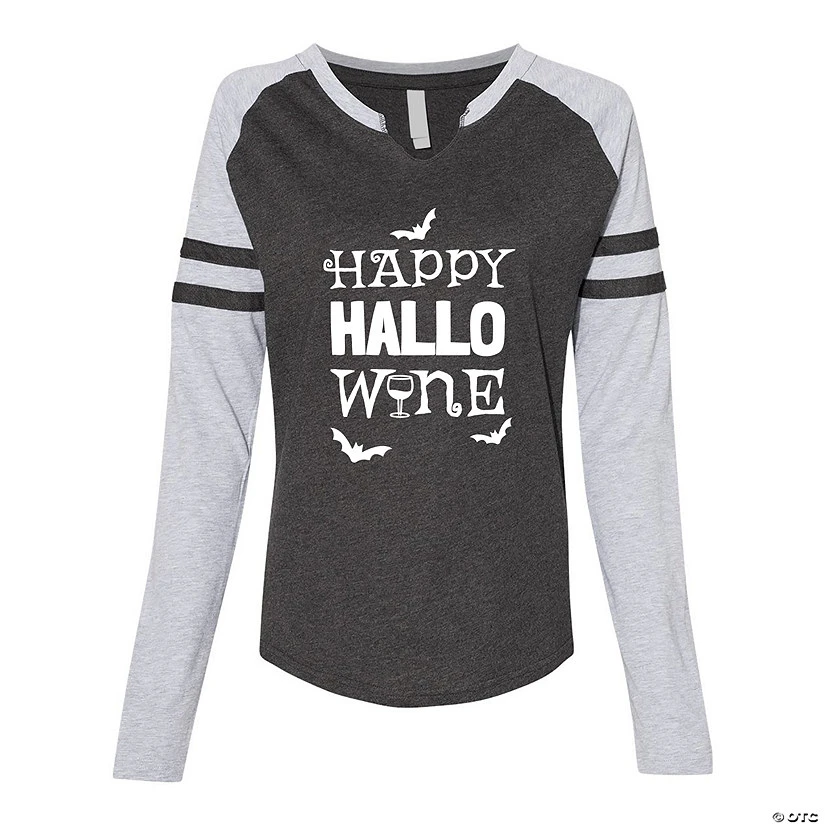 Celebrate two of your favorite things on one t-shirt: Halloween and wine! This attractive and comfortable long sleeve shirt features Halloween images and the message “Happy Hallo-wine”, making it the perfect Halloween gift for a woman who loves a nice glass of wine. Wear this t-shirt to work instead of a costume to celebrate the holiday in a fun way. © OTC• Brand: LAT• Long sleeve• 60/40 cotton/polyester, 4.5 oz.• Semi-fitted• Self-fabric collar binding and back neck tape• Raw serge V-notch• Side seams• Contrast-color, topstitched self-fabric sleeve stripes• Double-needle stitched sleeves and bottom hem• Rounded hem• EasyTear™ label• Need more? With our tees, we’ve got your back (and front)! To order in bulk for any size group, just call 1-877-513-0384. Or, give us a ring if you’d like to easily customize any of our pre-printed shirts with our free design service.
