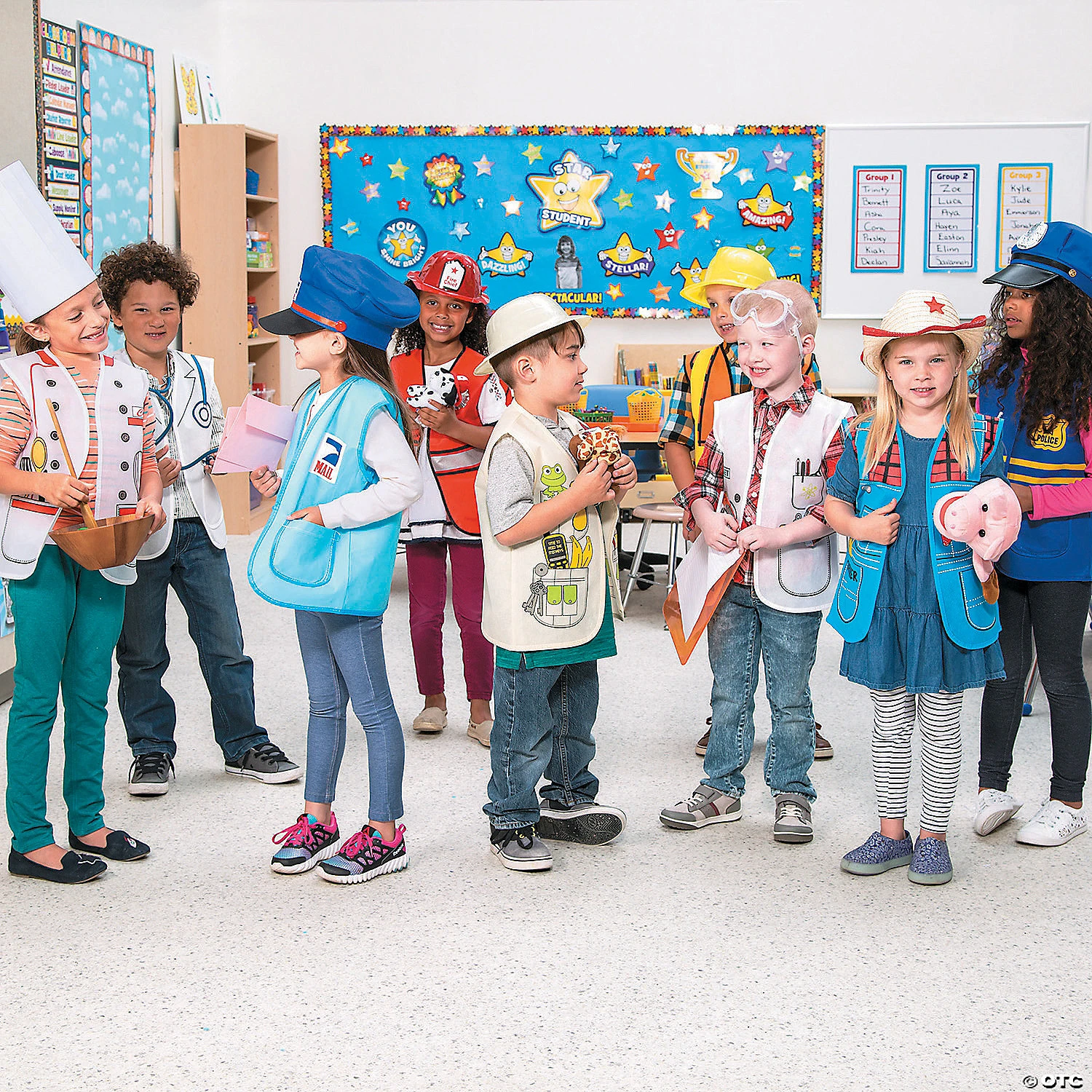 Spark kids’ imaginations with these firefighter hats! With a star and “Fire Chief” on the front, these firefighter hats are fun to wear on career day at school. If you need a bunch for a room of future firemen and firewomen, these adorable hats have you covered. They’re great for Halloween costumes, Halloween parties and field trips to the fire station. Give one of these hats to each little firefighter at your next firehouse birthday bash — they make awesome party favors that youngsters will enjoy long after the event is over. Plastic. 22″ circ. Not a protective helmet. © OTC