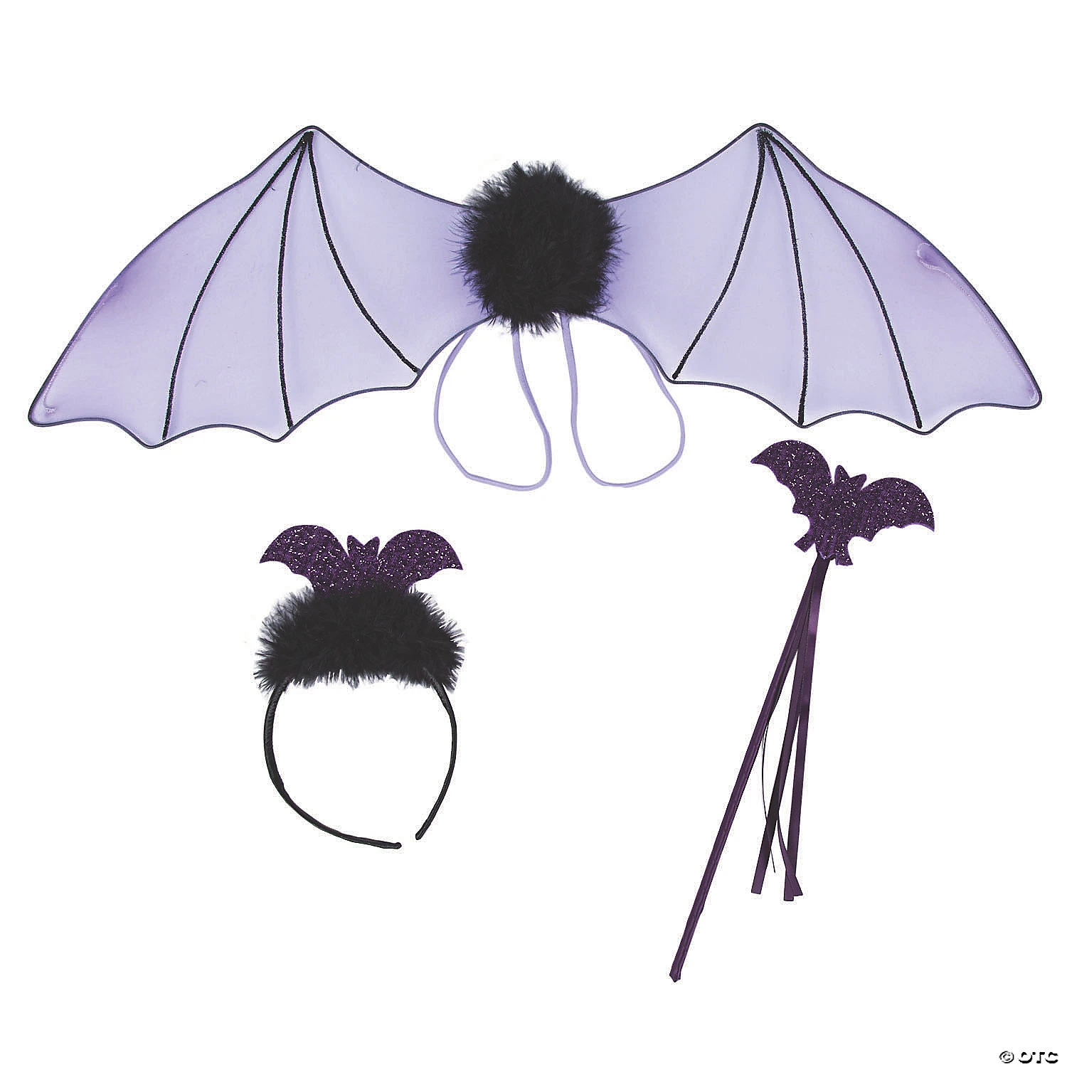 You look downright batty! No worries—in this case, that’s totally a good thing. A fabulous addition to Halloween costumes and party accessories, this set comes with everything needed to transform tiny tykes into winged creatures of the night. They’ll love wearing this at a haunted hoorah, during playtime or as an easy trick-or-treat costume. Just don’t be surprised if the phrase, “I vant to suck your blood!”, becomes a part of their vernacular in the days leading up to fright night! (3 pcs. per set) Includes an 11″ plastic wand with bat topper, a 5″ plastic headband and 25″ x 8 1/2″ polyester wings with elastic string.