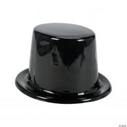 In basic black for your special occasion, these top hats are a fun way of topping off a costume. Perfect for theme birthday parties, school plays, classroom parties and more, these top hats are sure to add a little jazz to your photos! Plastic. 5″ x 20″ circ.
