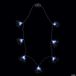 Normally, a ring of spiders around one’s neck is not desirable, but when it’s Halloween and those spiders light up, it’s time for an arachnid bash! These light-up spider necklaces will complement any kids costume and be a fun way to keep them more visible while trick-or-treating. Use them as prizes at the classroom Halloween party or hand them out to the trick-or-treaters in your own ghoul gang. Plastic. 33″ Includes on/off button. Includes batteries.