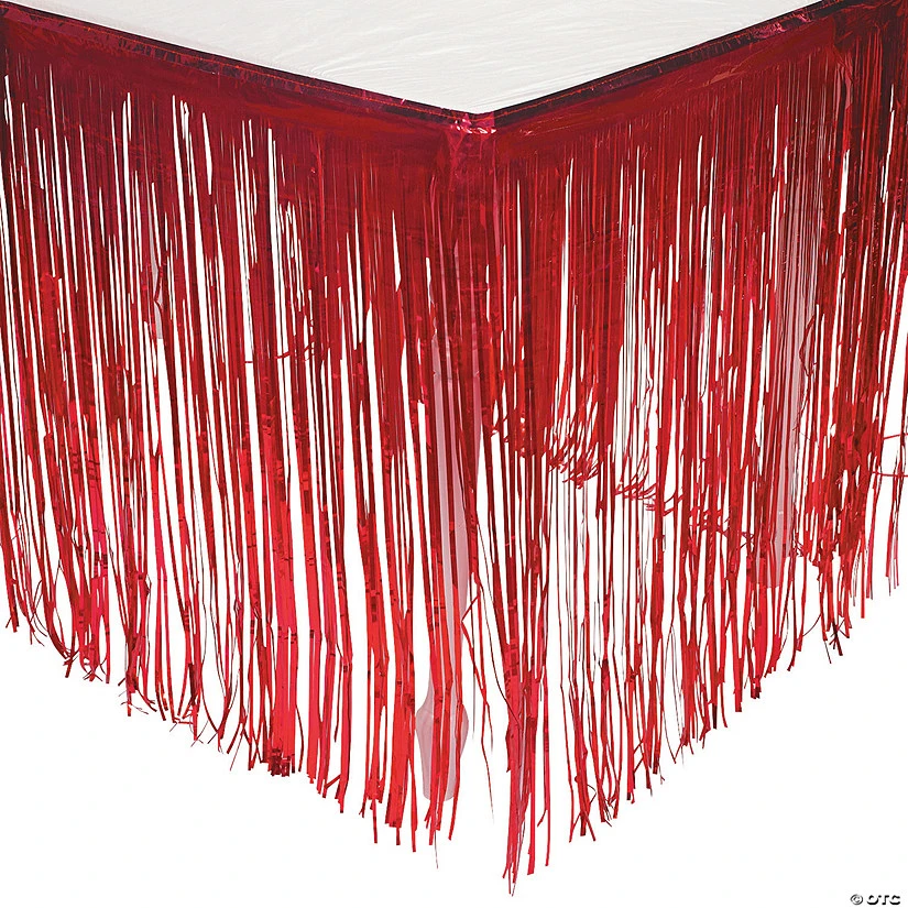 Add to your party supplies and easily detail any table for your event! Metallic Fringe Table Skirts are great party decorations for graduation parties, birthdays, luaus, wedding receptions and other celebrations. Match this skirt to the rest of your party or event color scheme! Plastic. 9 ft. x 29″
