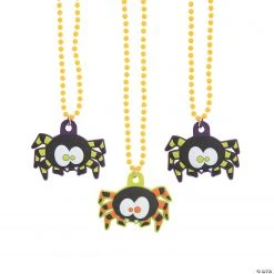 Go for creepy-crawly cool with your Halloween giveaways and hand out these spider necklaces! Fun candy alternatives for trick-or-treaters, this Halloween jewelry is scary good fun for little ones. Add these Halloween necklaces to your Halloween supplies and party favors. Plastic. (2 dozen per unit) 2 1/4″ charms on 24″ circ. beaded necklaces. © OTC