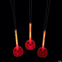 Glow for it! These cute, smiling jack-o-lantern necklaces have an eerie glow thanks to the included glow sticks, creating necklaces that kids will love to wear on Halloween. Parents will appreciate how these fun necklaces make kids more visible as they’re out trick-or-treating! Hand these out as alternatives to candy or as Halloween prizes for kids. Plastic. Includes 6″ glow sticks and 3 3/4″ charms on 30″ breakaway cords. Simple assembly required.