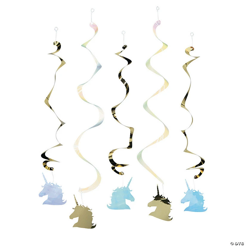 You’re sure to have a magical experience with unicorns hanging around! These unicorn sparkle hanging swirls make awesome party decorations for a unicorn-themed birthday party or celebration. The iridescent shine will really catch guests’ eyes and make it seem like the unicorns are dancing around the party space. Foil. (5 pcs. per unit) Hangs 30″ – 39″.