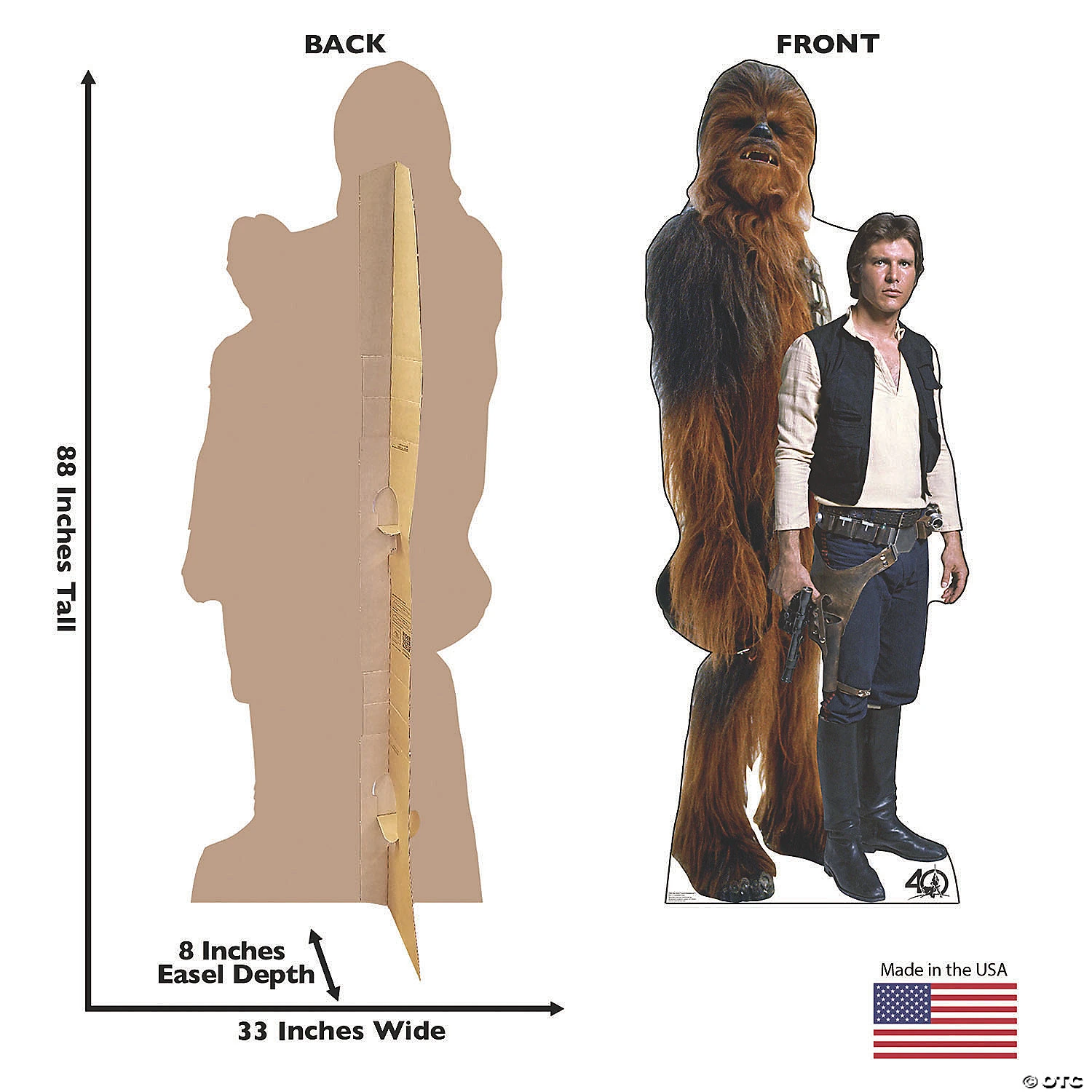Celebrate a classic cinematic friendship! This life-sized photo prop of Chewbacca and Han Solo is a great addition to your Star Wars party supplies and party decorations. Pose for photos with these legendary smugglers! Cardboard. 33″ x 88″ Stand-ups are one-sided with a brown cardboard back. Simple assembly required. © Advanced Graphics Special Shipping Information: This item ships separately from other items in your order. This item cannot ship to a P.O. Box. This item may be subject to additional processing days.ITEM IS NOT ELIGIBLE FOR EXPEDITED SHIPPING